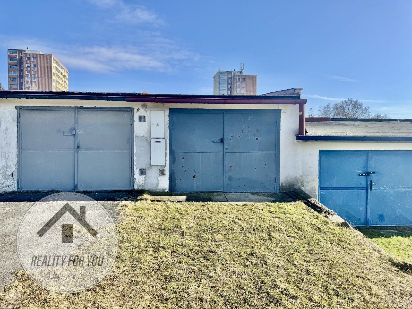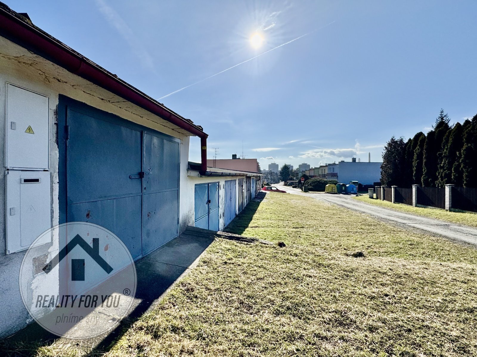 Garážový komplex je posazen dále od vozovky, pozemek před garáží je ve vlastnictví města Česká Lípa a může sloužit např. pro další parkování před garáží.