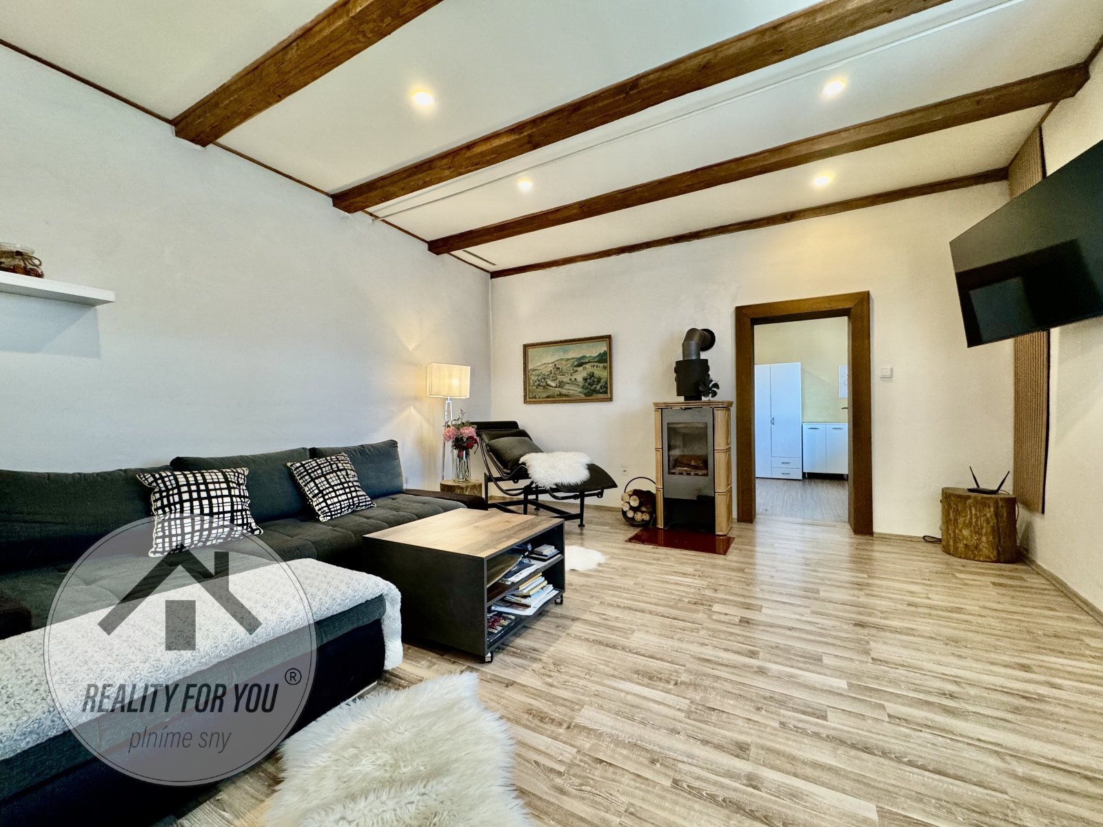Výměnou prošla i celá střecha včetně krovů. Podlahy jsou v kombinaci dřevo, dlažba a vinyl. Nové elektro rozvody, rozvody vody, štukové omítky a plastová okna.