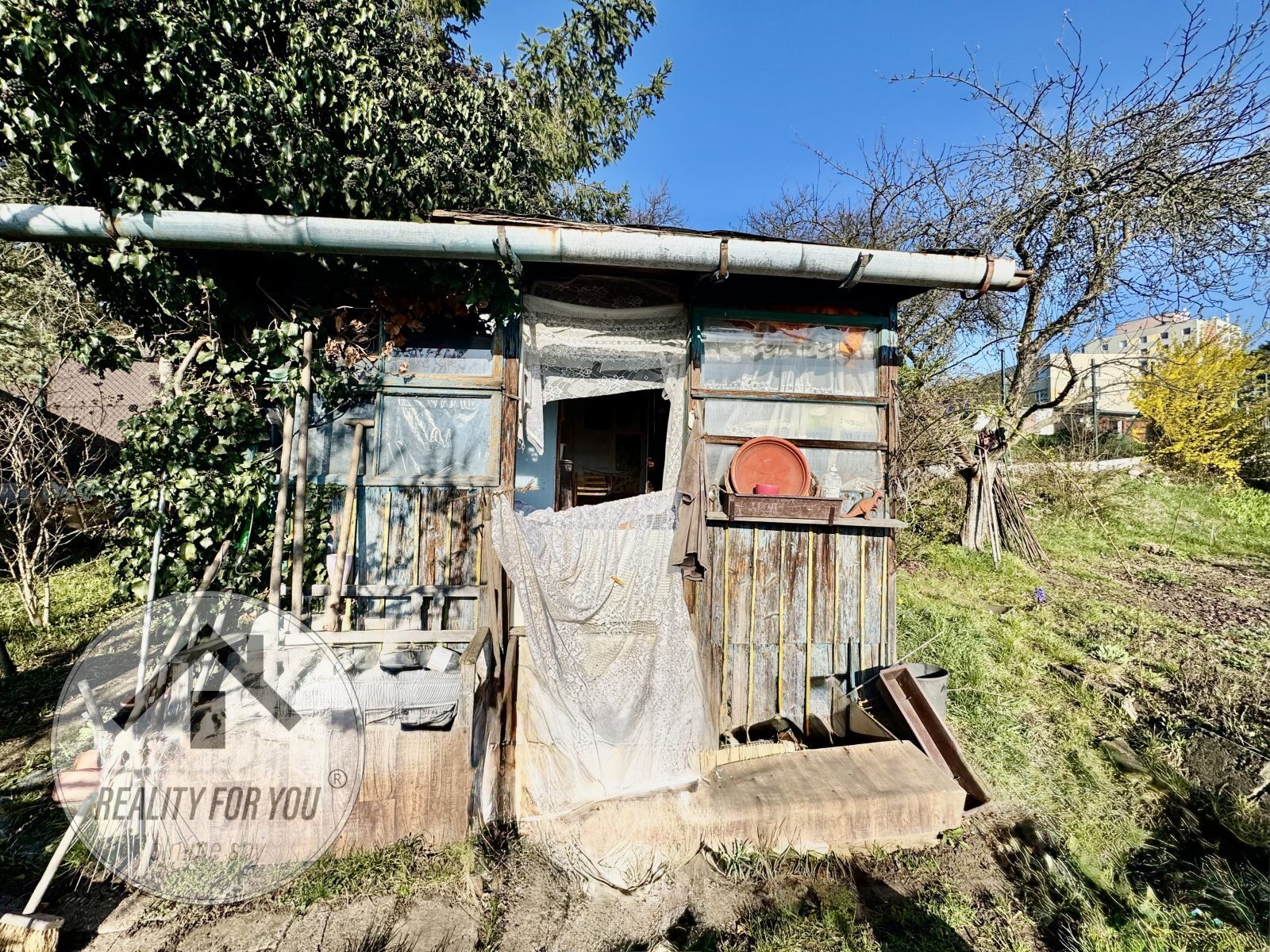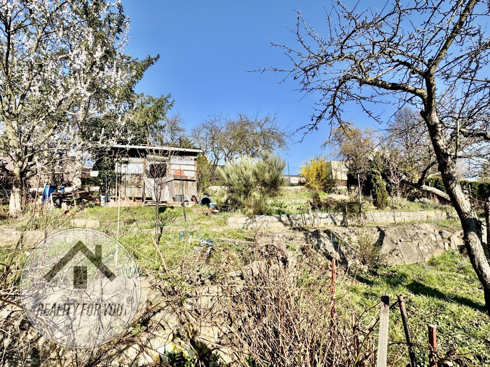 Na pozemku se nachází torzo zahradní chatky, které je určeno k demolici atak nabízí novému uživateli přizpůsobení zahrádky dle vlastních představ již nyní na začátku sezóny.